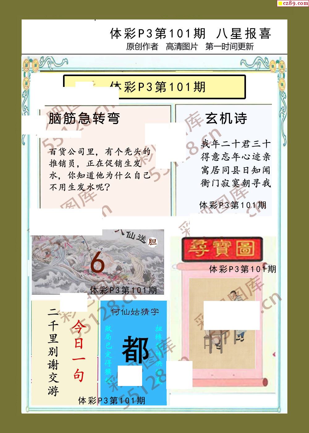 八星报喜101期体彩p3图谜