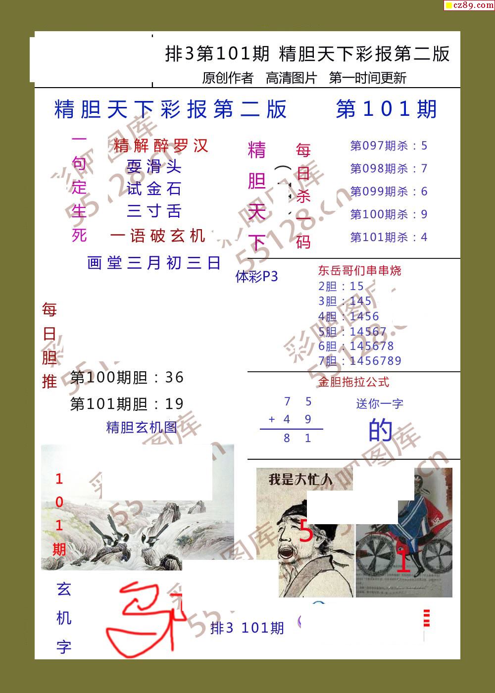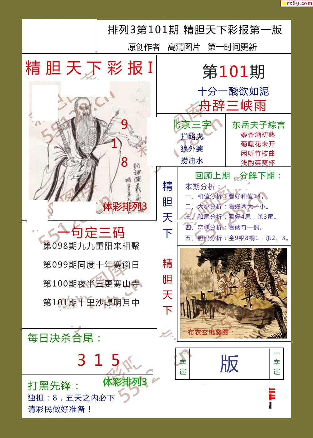 精胆天下彩报101期体彩p3图谜