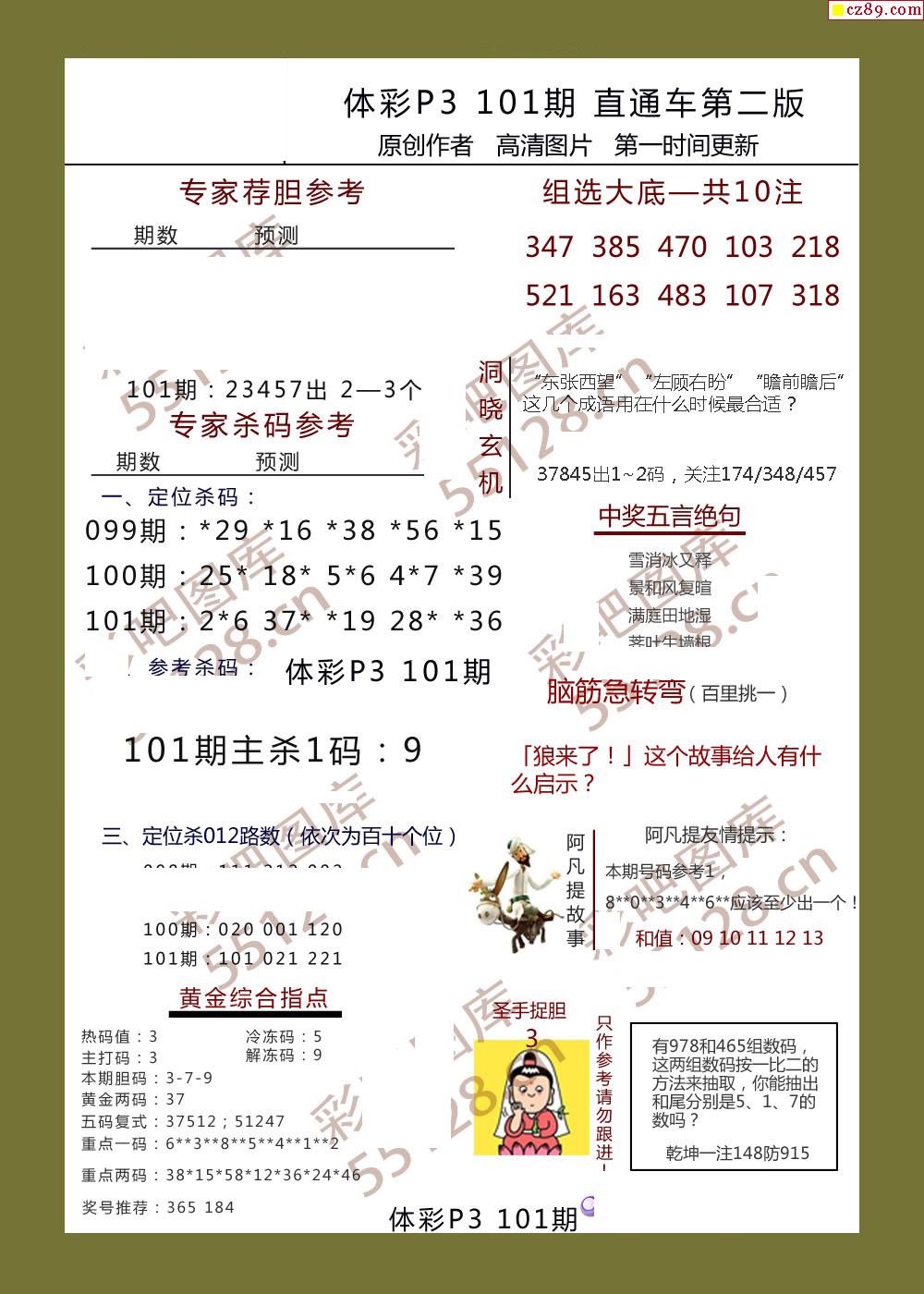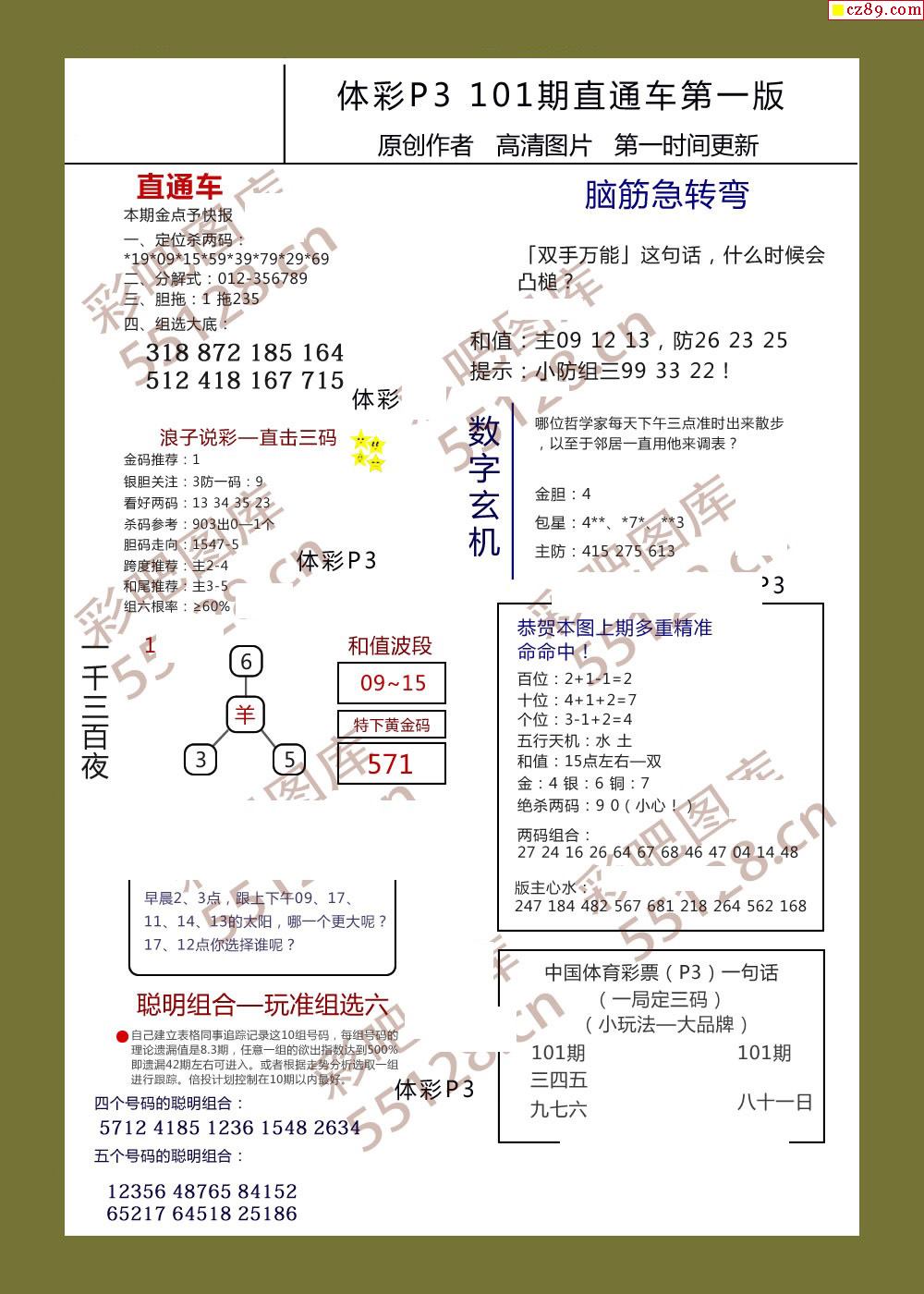 直通车AB版101期体彩p3图谜