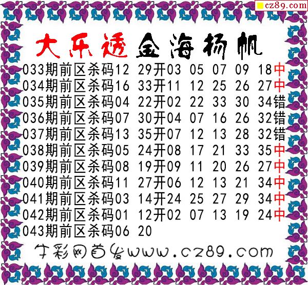 大乐透043期牛彩特邀专家前区后区杀号定胆图表