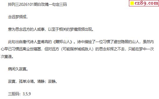 白玫瑰排三一句定三码26年101期