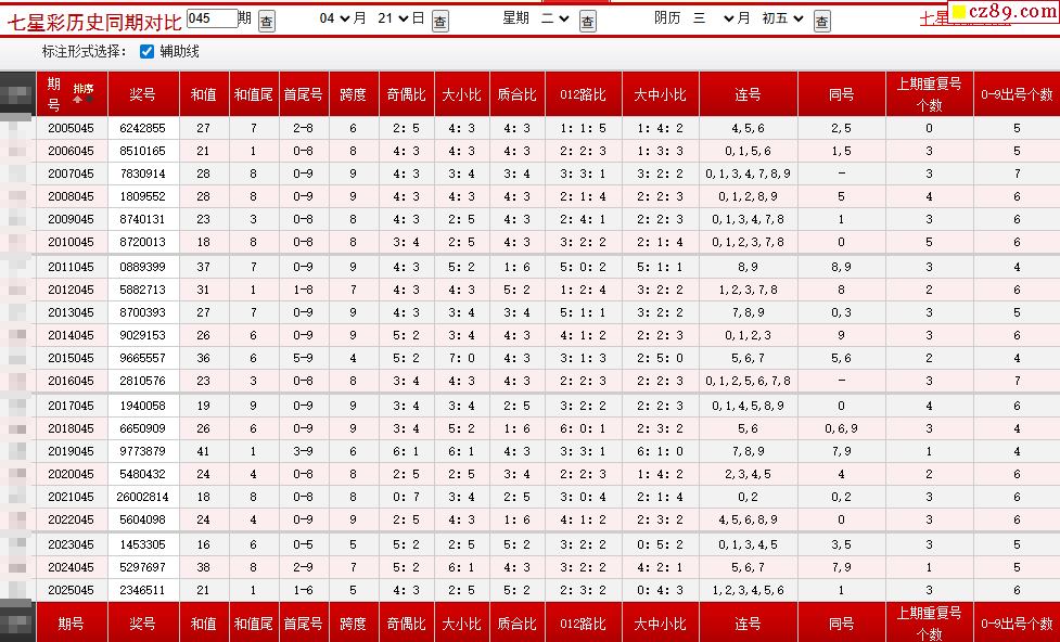 045期七星彩历史同期对比图