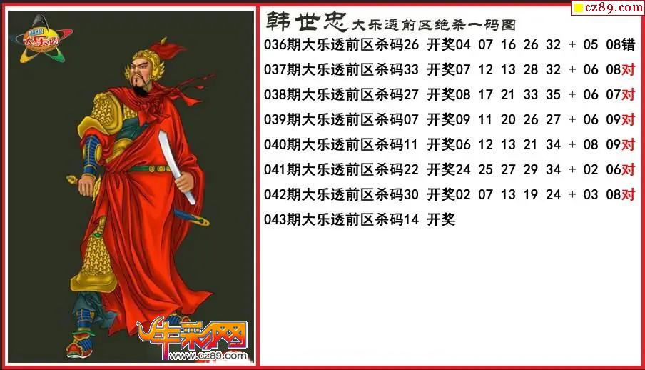 大乐透043期韩世忠前区绝杀一码图