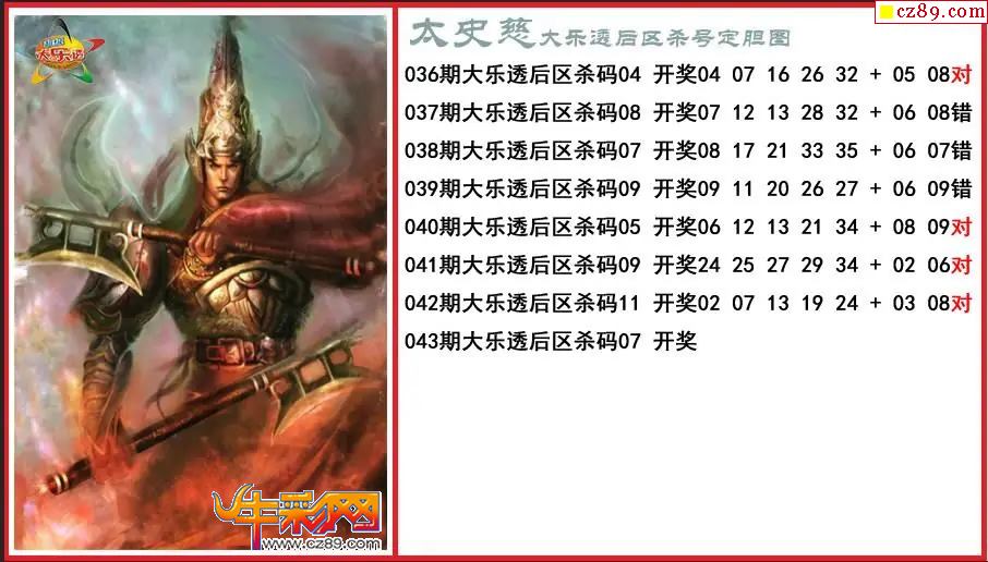 大乐透2026043期华佗看胆后区杀二码图谜 10中7