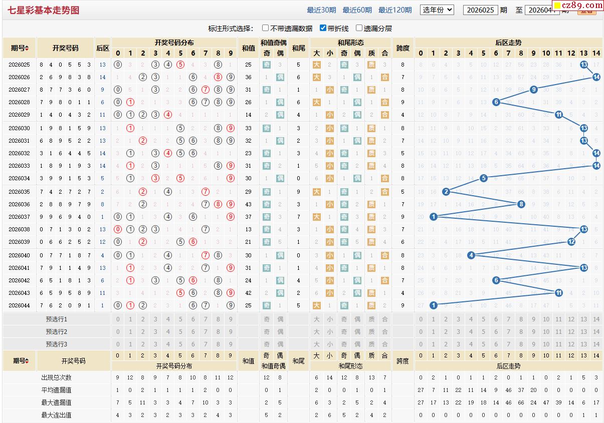 26年045期体彩七星彩近期走势图分析
