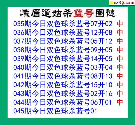 峨眉道姑杀蓝号045期双色球图谜 10中10