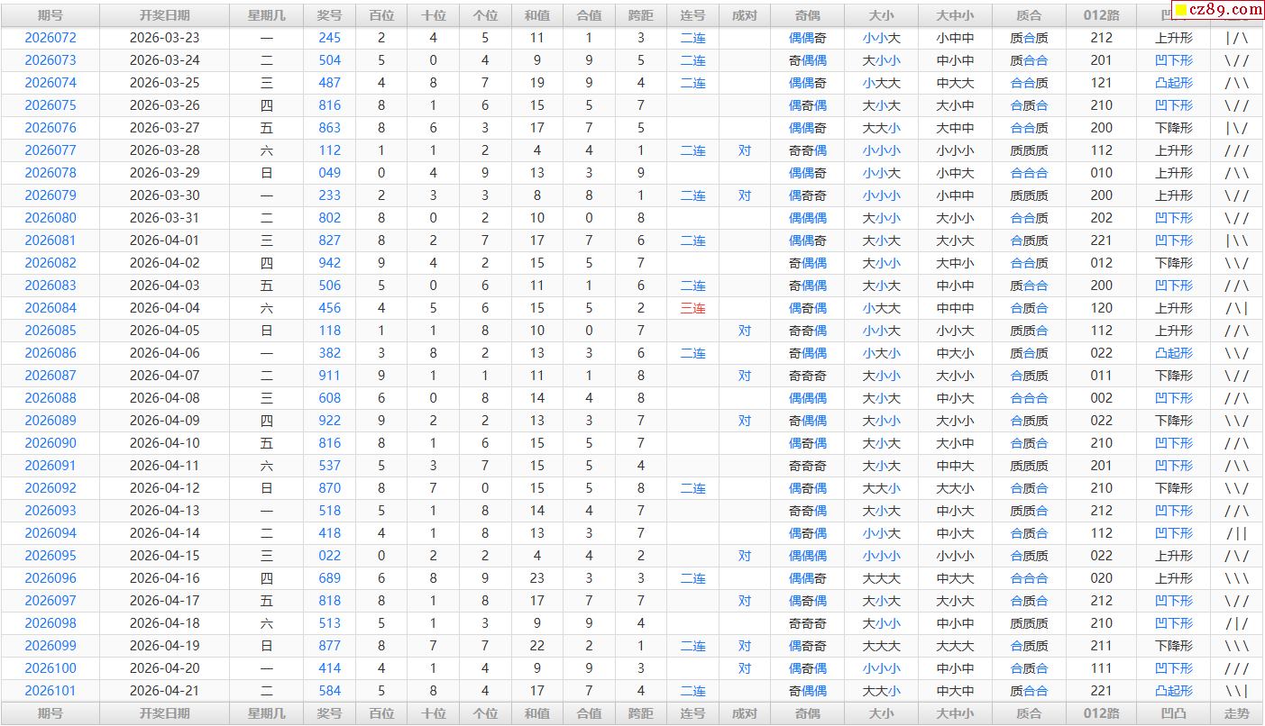 26年102期福彩3D综合统计表
