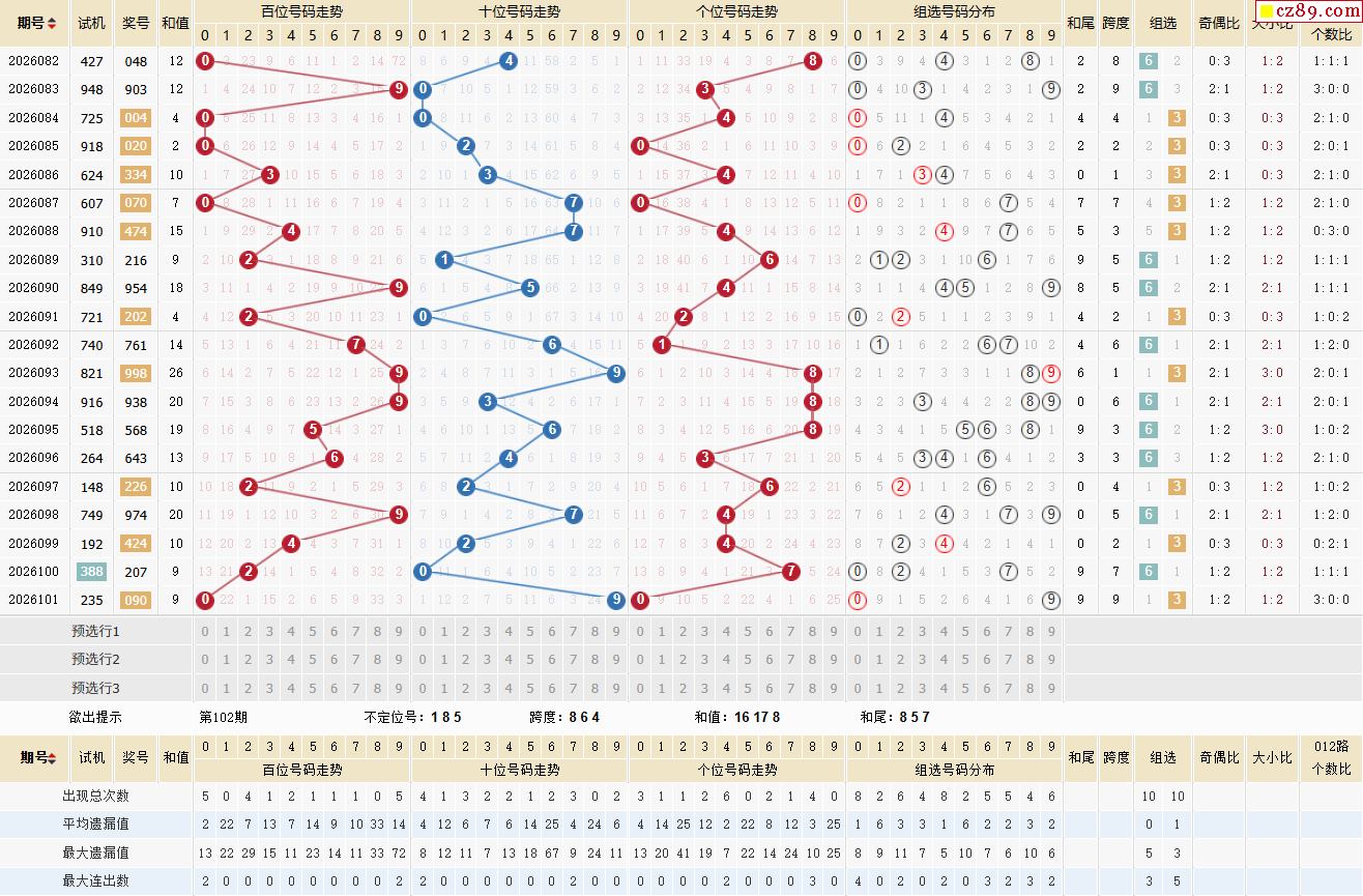 102期体彩排列3近期历史号码图表