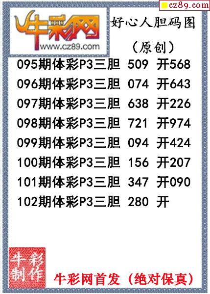好心人送胆102期体彩p3图谜(原创)