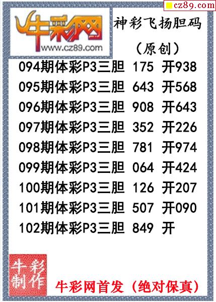 神彩飞扬三胆102期体彩P3图谜(原创)