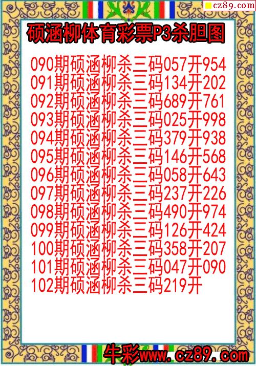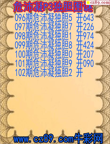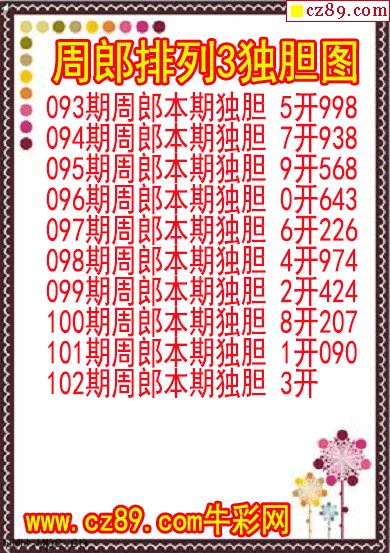 2026年102期牛彩网体彩P3画迷图谜汇总分享