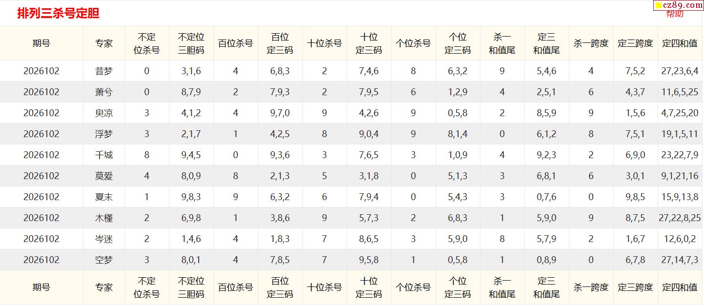 26年102期彩宝贝专家体彩P3杀号定码图表