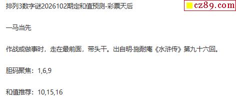 彩票天后p3定和值谜26年102期