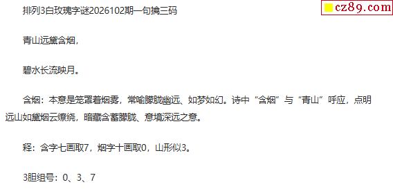 体彩P3字谜汇总2026年102期超级马克p3今日字迷总汇