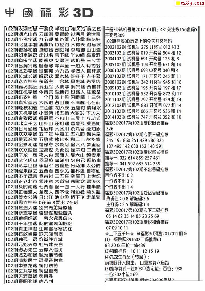 杀手+鑫马快报+字迷汇总26年102期3d图谜