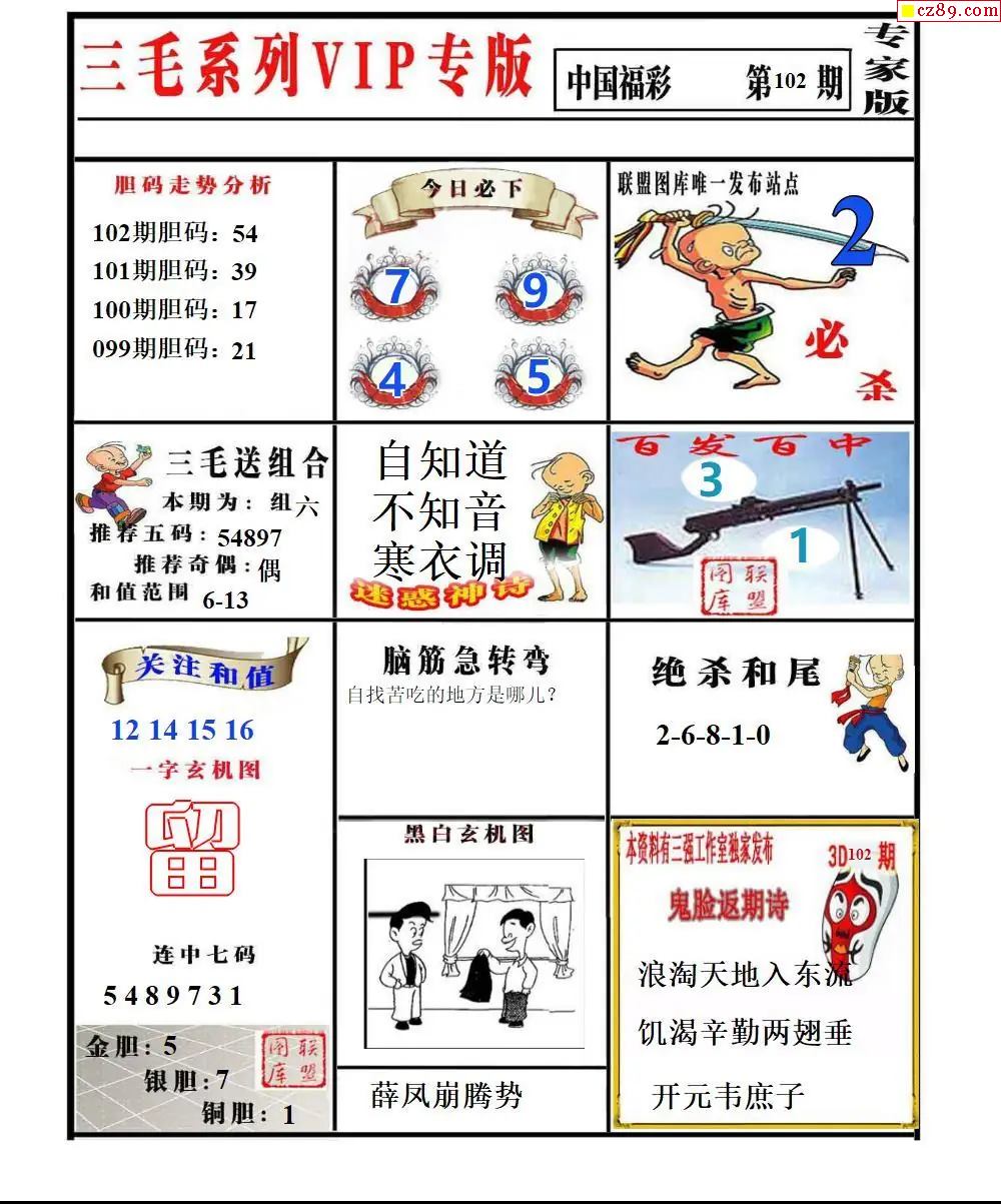 福彩3D2026102期东盛彩报+精品三毛会员版
