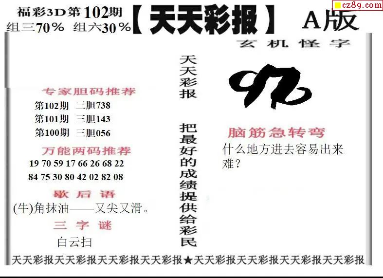牛彩版3D字谜彩报图26年102期打印版