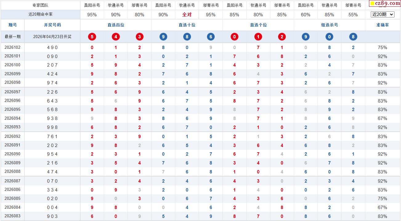 26年103期彩宝贝专家体彩P3杀号定码图表