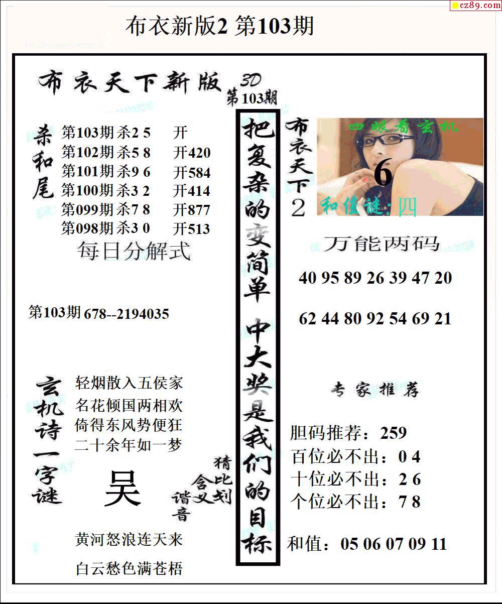 福彩3D2026103期 祁连牧哥百财纳福胆码图谜推荐