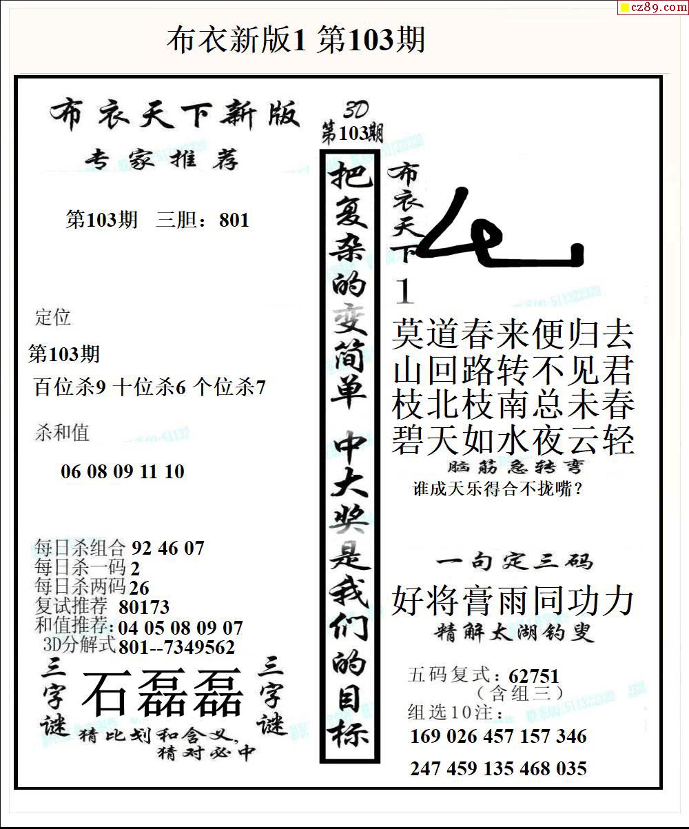 福彩3D2026103期 山上的羊飞鸟胆码图