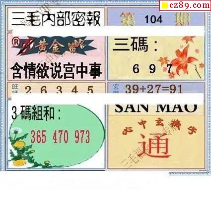 三毛图2026104期3d图谜