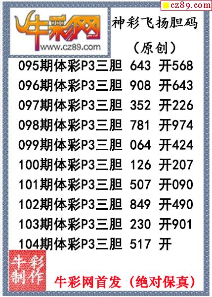 神彩飞扬三胆104期体彩P3图谜(原创)