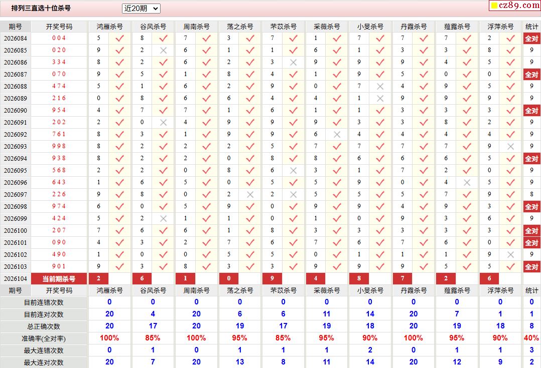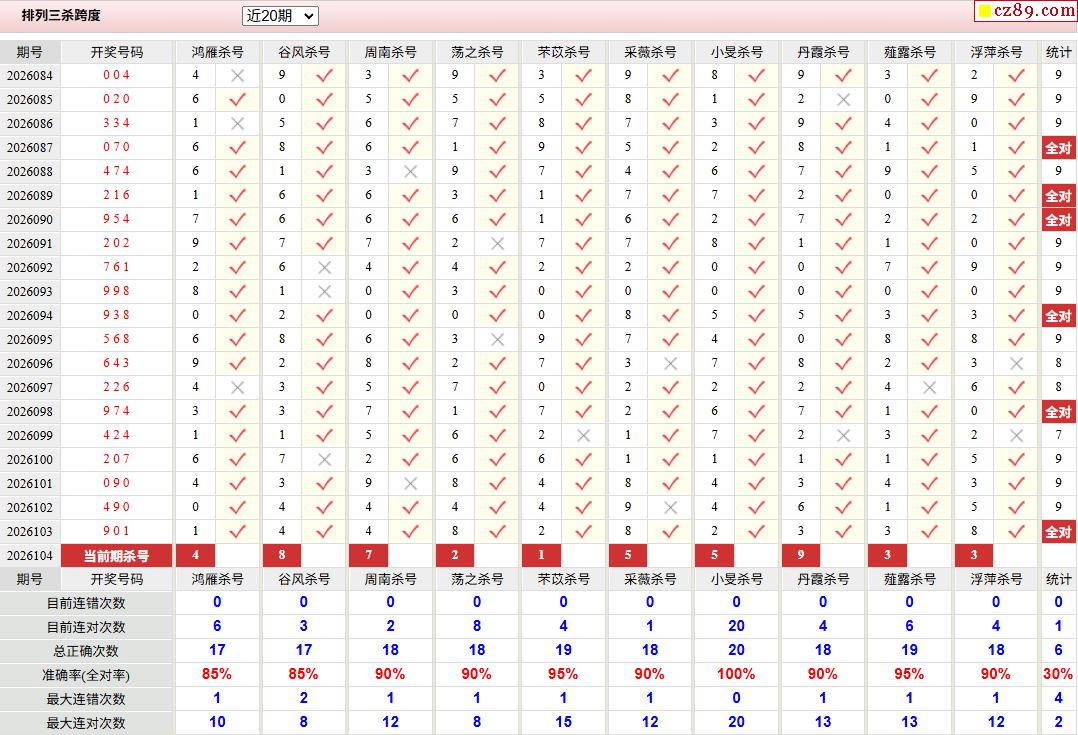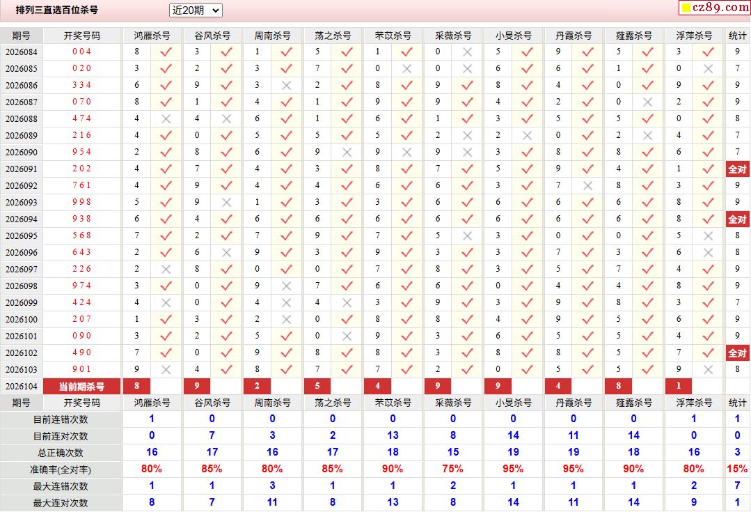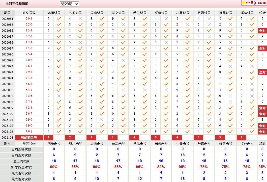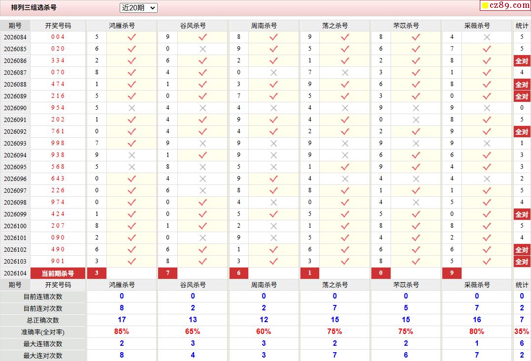 26年104期彩宝贝专家体彩P3杀号定码图表