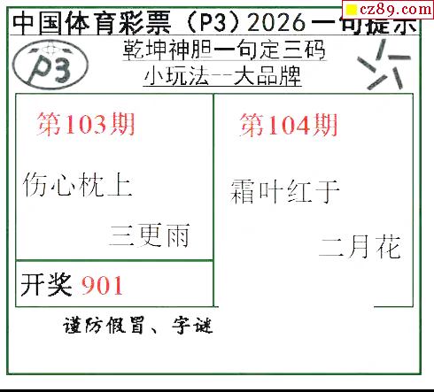 乾坤一句定三码26年104期P3图谜