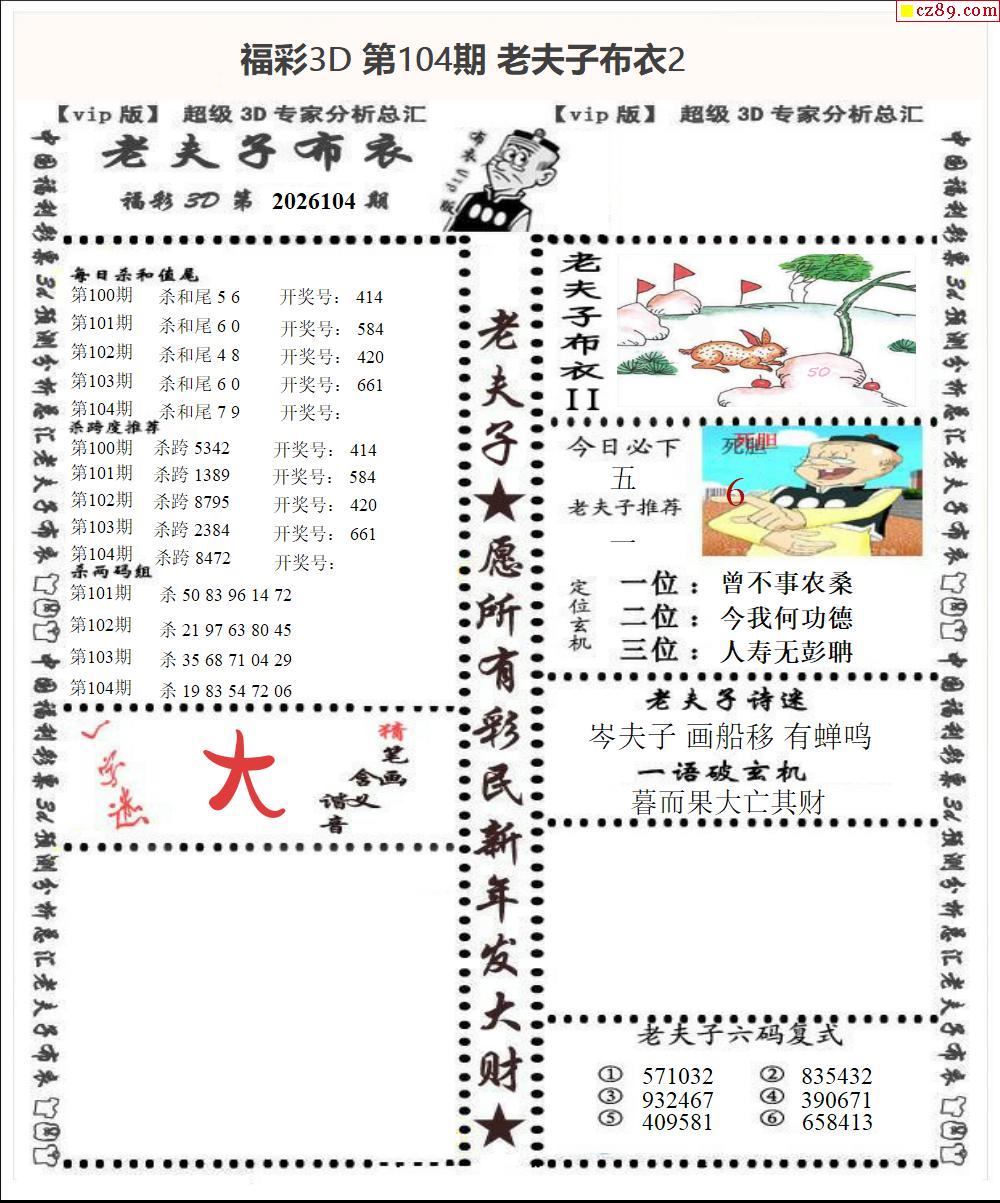 老子杀号2026104期今日3d图谜