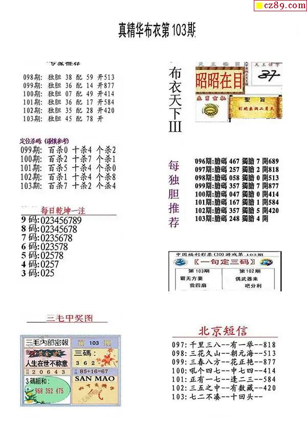2026104期3D图谜汇总(一)
