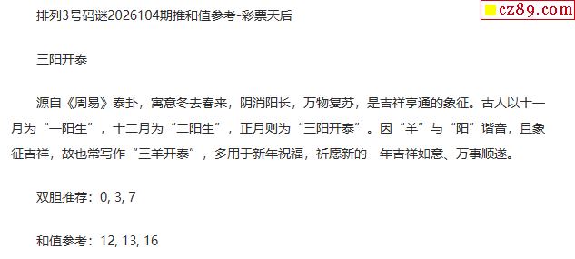 体彩P3字谜汇总2026年104期超级马克p3今日字迷总汇