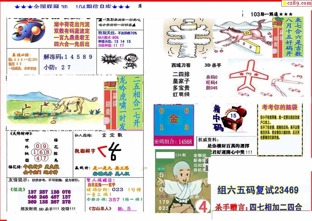 杀手+鑫马快报+字迷汇总26年104期3d图谜