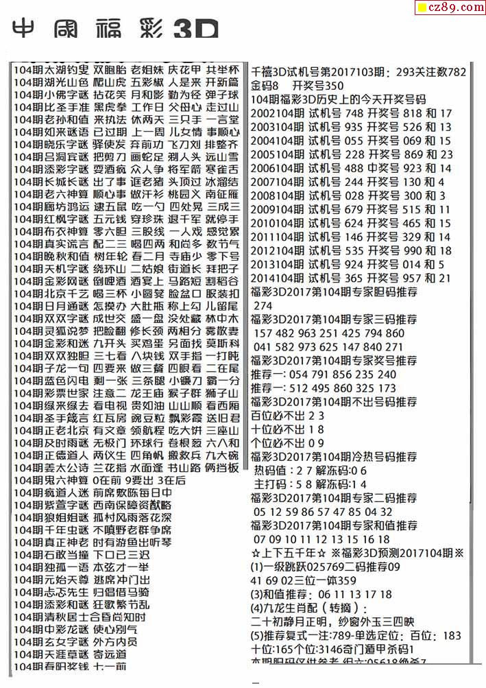 2026104期福彩3D图谜汇总