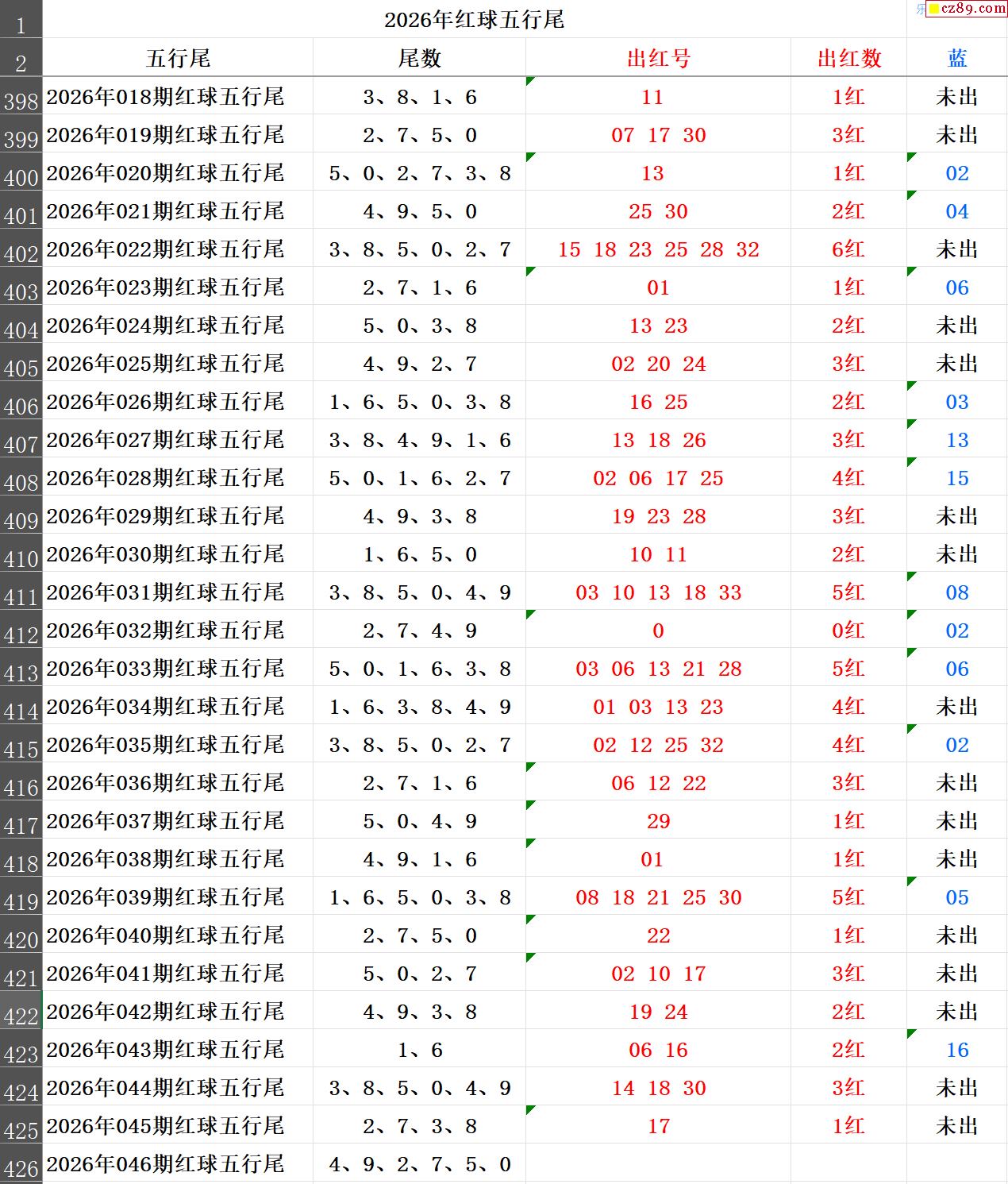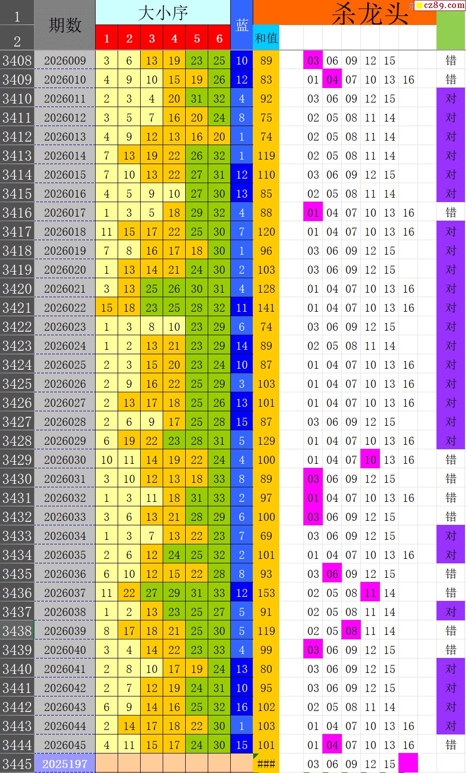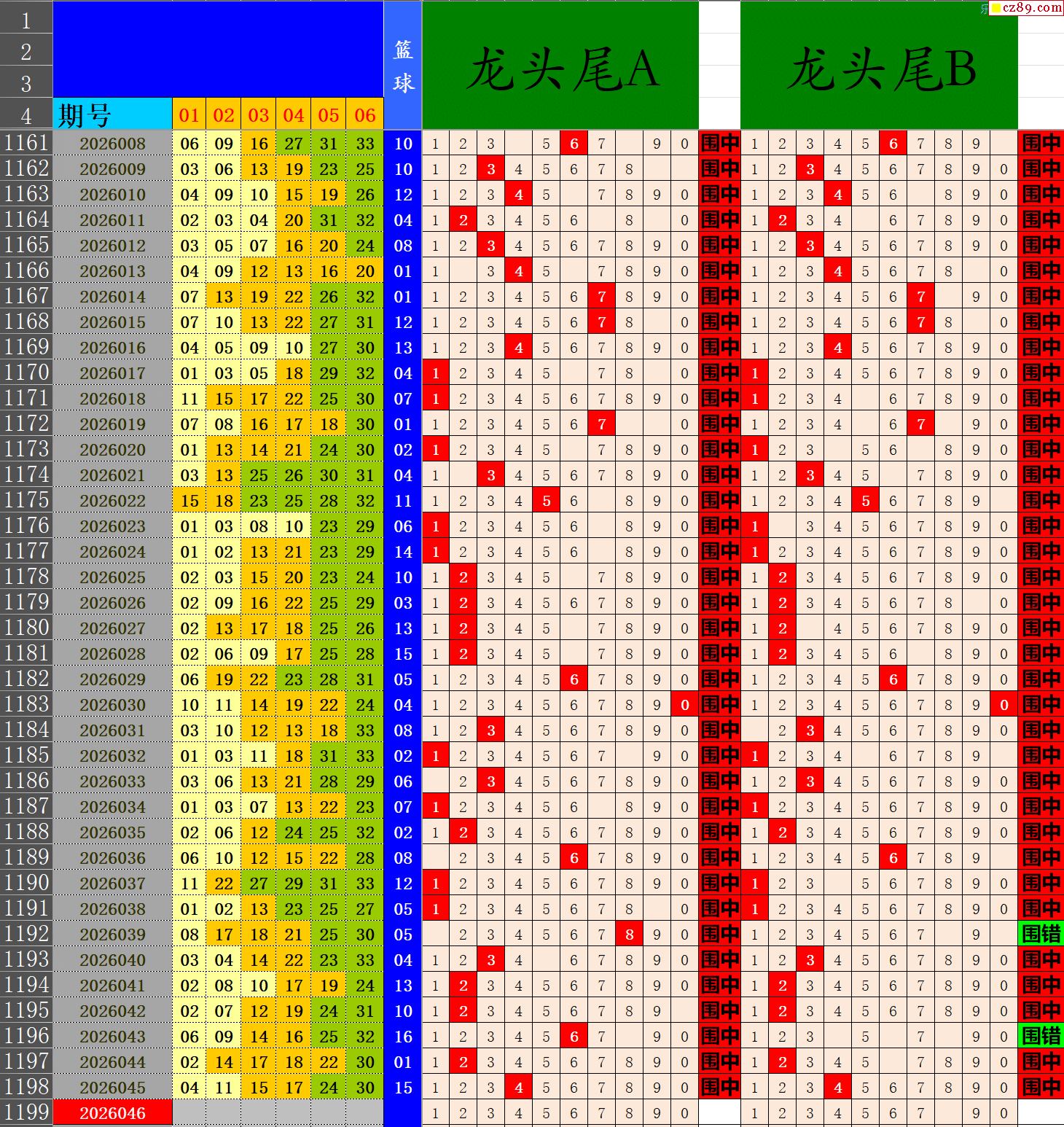 26年046期秋雨龙头凤尾走势图表
