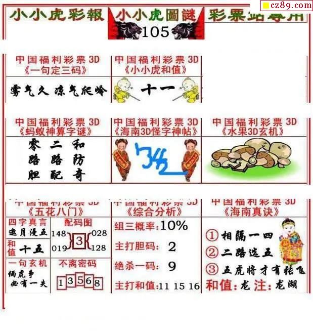 小小虎彩报2026105期3d图谜