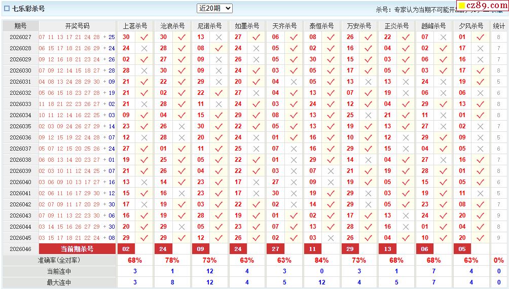 七乐彩046期 澳客专家杀号码预测推荐