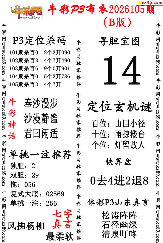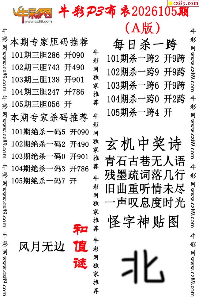牛彩P3布衣26年105期AB版图谜(精华版)