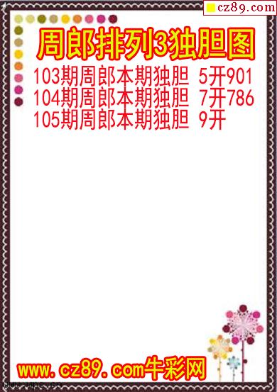 26年105期周郎排列3独胆图