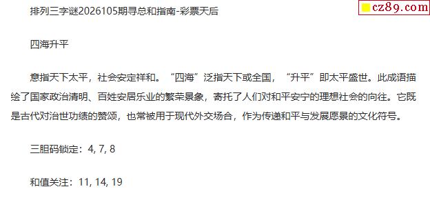 体彩P3字谜汇总2026年106期超级马克p3今日字迷总汇