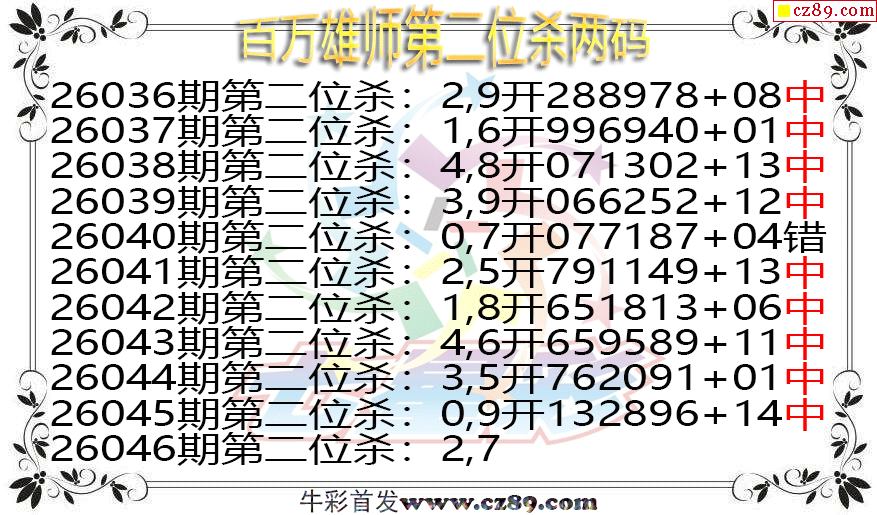 七星彩2026046期百万雄师第二位杀两码图谜 10中9