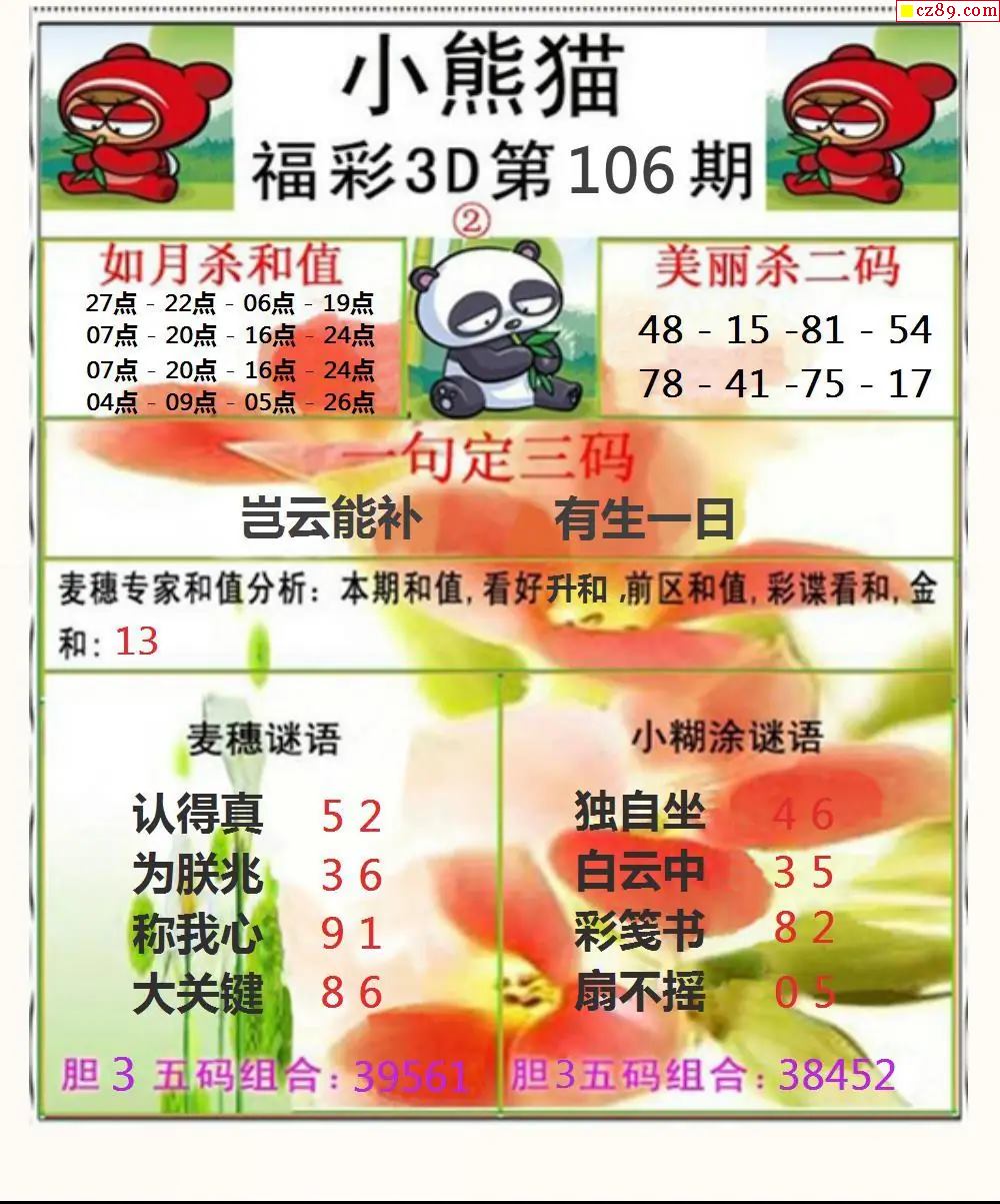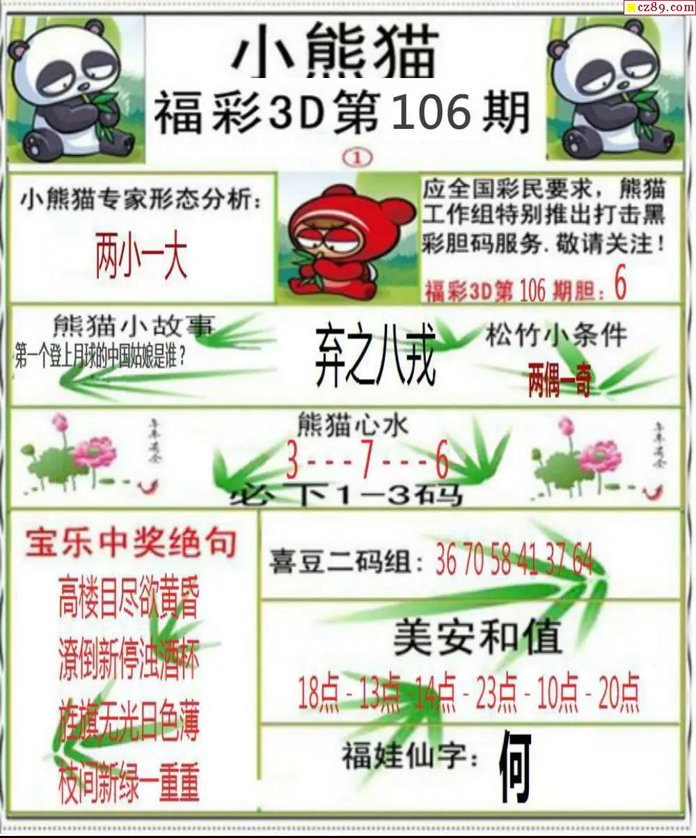 小熊猫彩报2026106期3d图谜