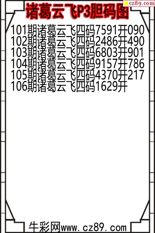 26年106期诸葛云飞P3胆码图