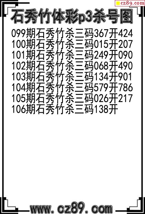 26年106期石秀竹体彩p3杀号图
