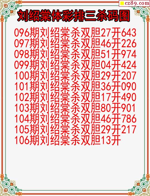 26年106期刘绍棠体彩排三杀码图