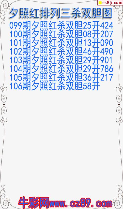 26年106期夕照红排列三杀双胆