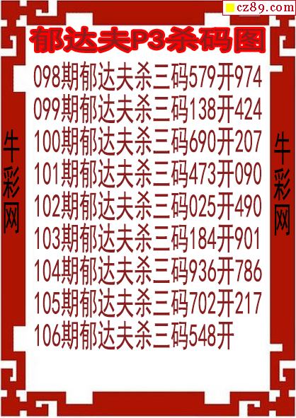 26年106期郁达夫P3杀码图