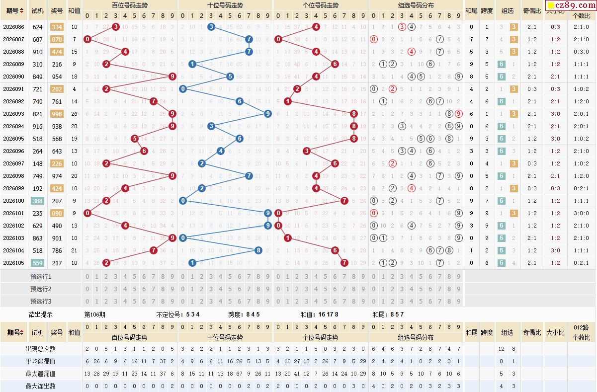 26年106期彩宝贝专家体彩P3杀号定码图表