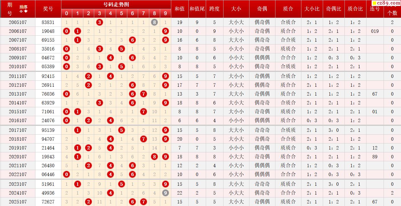 第107期体彩P3历史同期对比