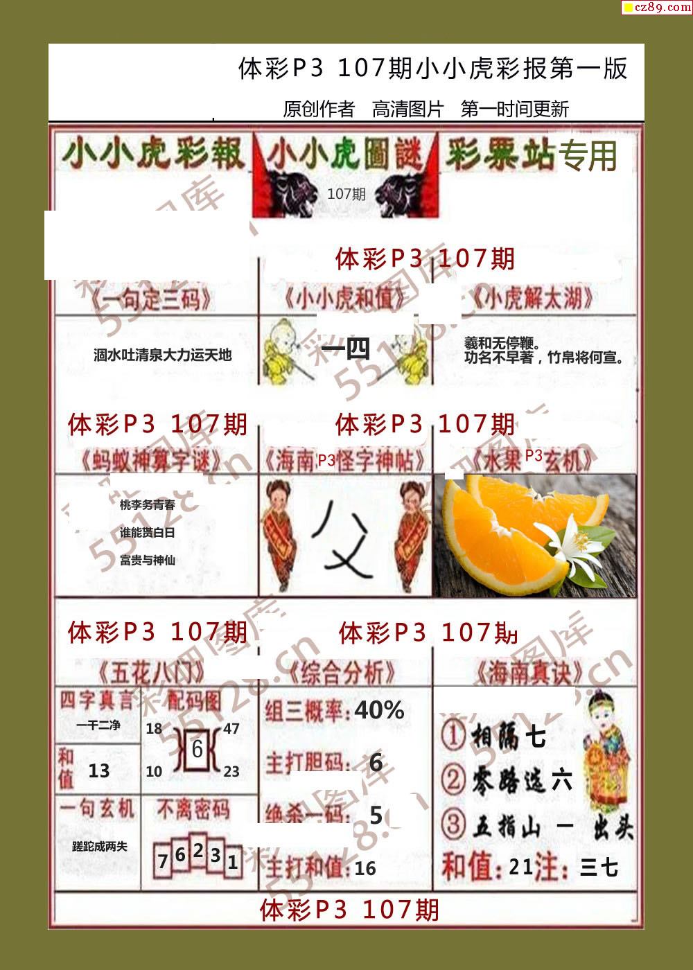 小小虎彩报107期体彩p3图谜