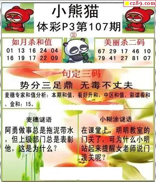 2026年107期牛彩网体彩P3画迷图谜汇总分享